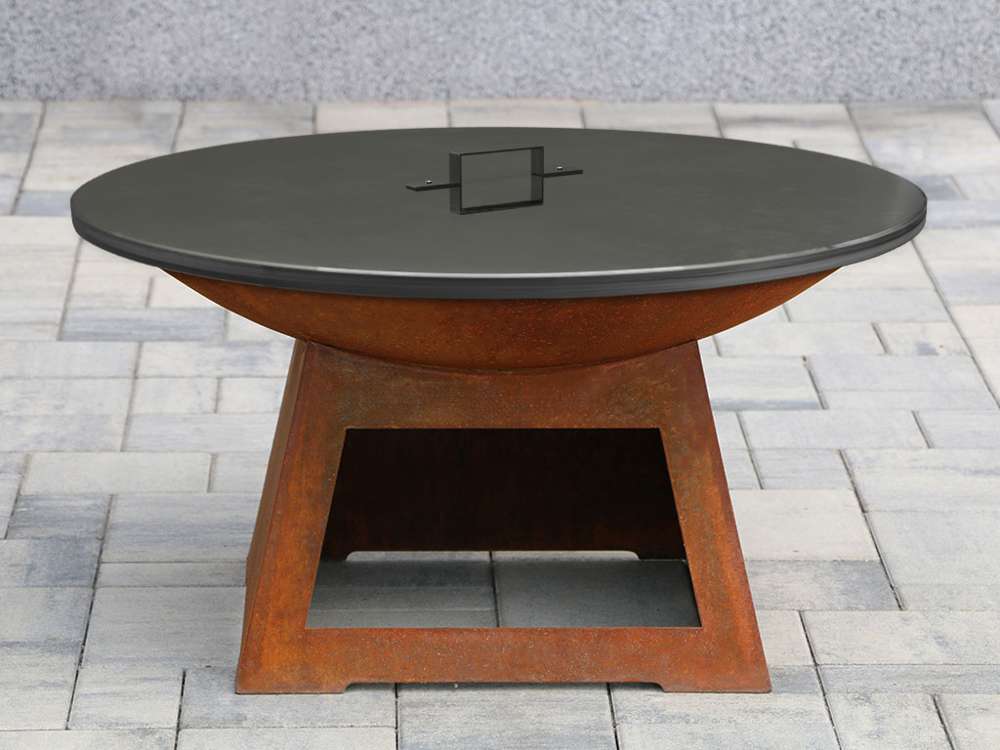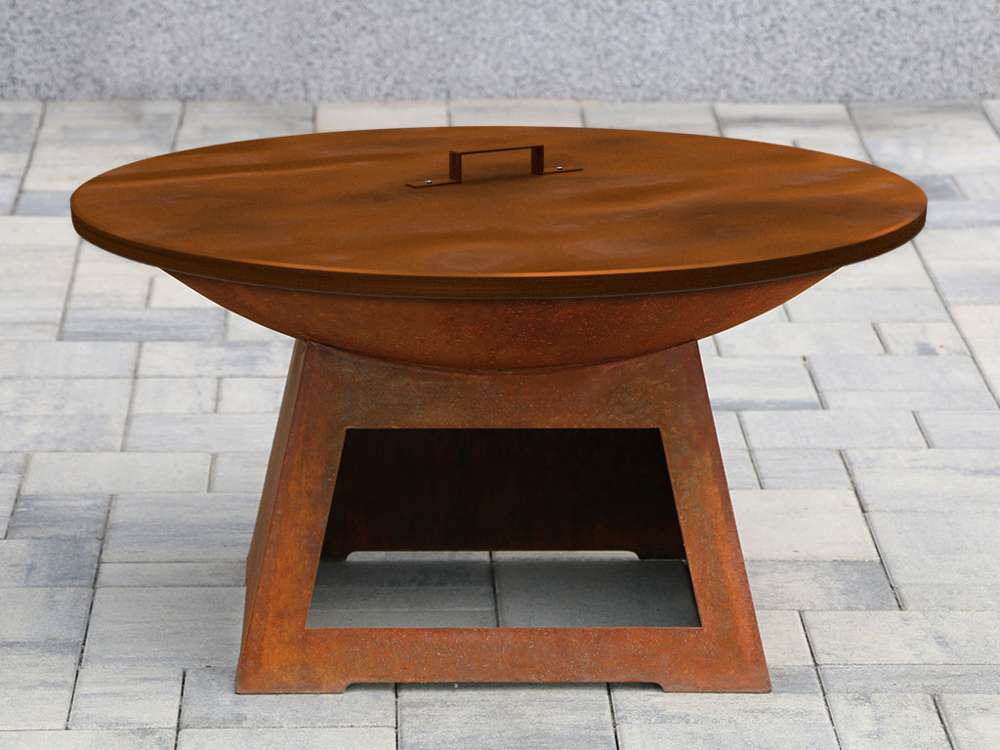 Kruhová ochranná poklice z Cortenu slouží k zakrytí našich kruhových ohnišť z Cortenu o průměru 72, 80 i 100 cm. Chrání topeniště před napadáním listí či jiných nečistot, zároveň umožňuje zhášení ohně a zabraňuje vylétávání popela. Poklice je vyrobena z Cortenové oceli a dodávána v nevyzrálém stavu. Postupně tedy zraje a její barva se mění na rubínovou patinu.